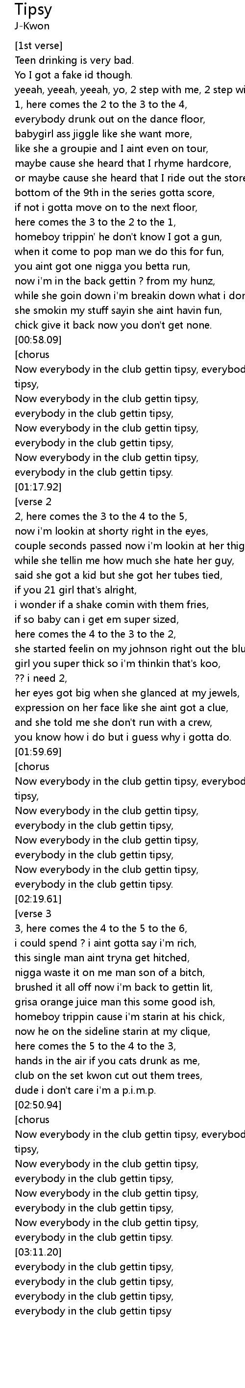 Now everybody in the club gettin tipsy, everybody in the club gettin tipsy, |