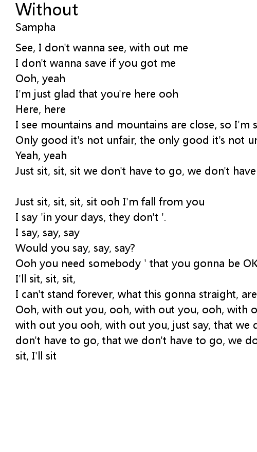 Ooh, with out you, ooh, with out you, ooh, with out you, ooh, with out you, ooh, with out you ooh, with out you, just say, that we don't have to go, that we don't have to go, that we don't have to go, we don't have to go with out, I'll sit, I'll sit |