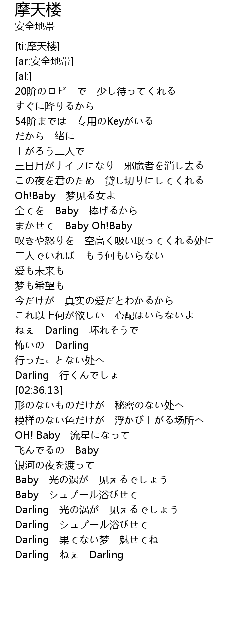 | [02:16.65] | ねぇ Darling 坏れそうで |