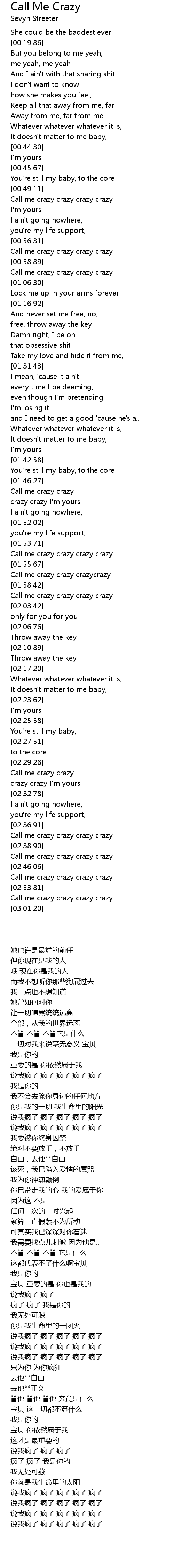 Call me crazy crazy crazycrazy |