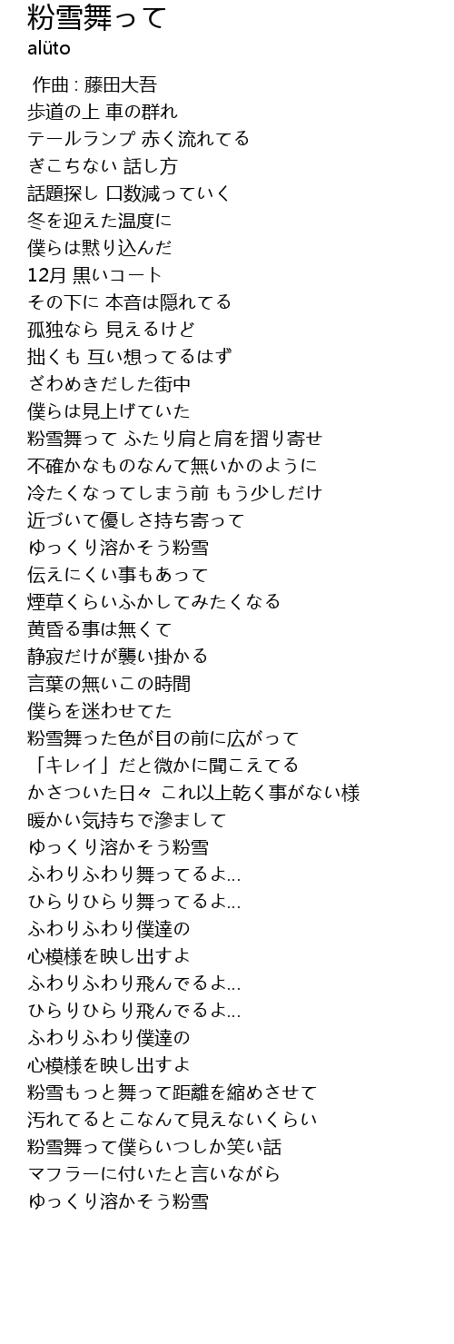 | [01:42:00] | 粉雪舞って ふたり肩と肩を摺り寄せ |