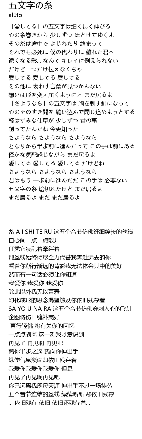 | [04:56.00] | 五文字の糸 途切れたけど まだ居るよ |