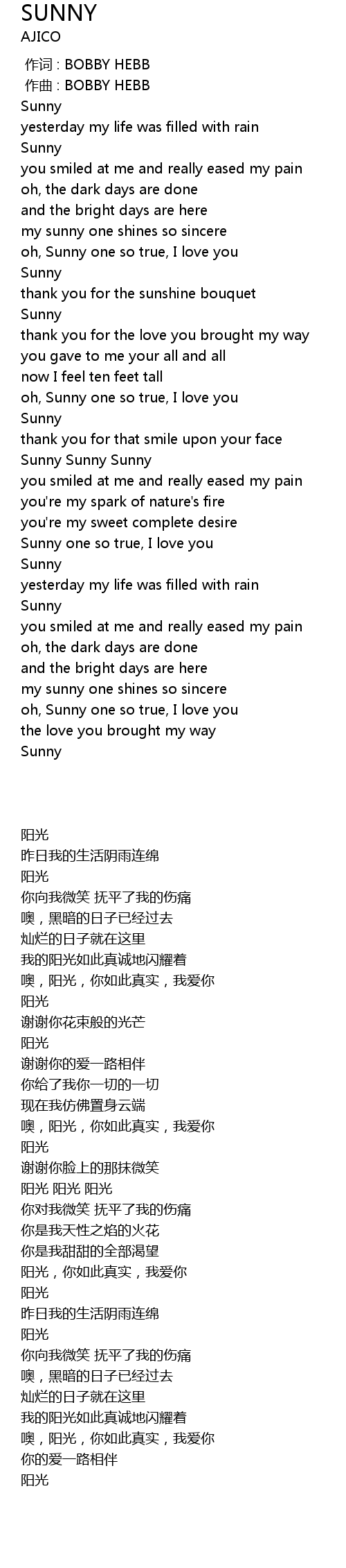 | [00:49.000] | oh, Sunny one so true, I love you |
