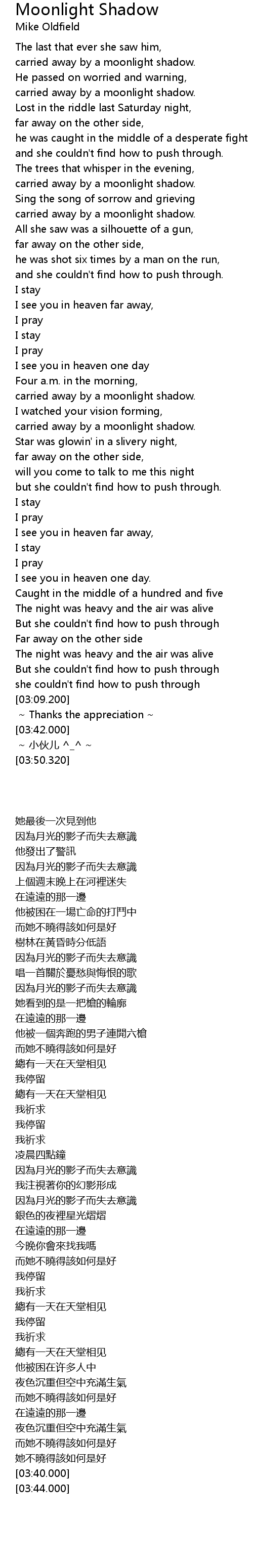 | [01:38.010] | Star was glowin' in a slivery night, |