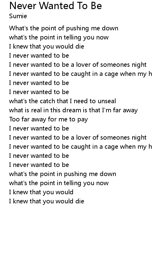 | I never wanted to be | |