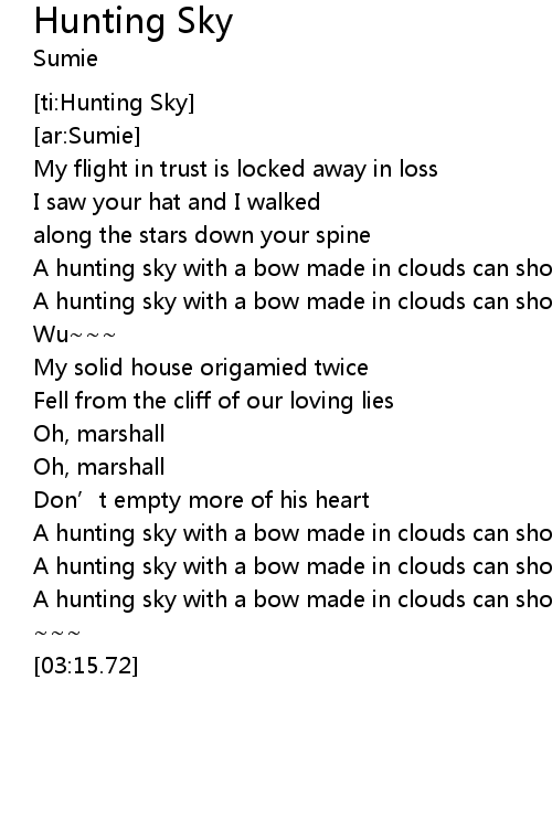 | [02:29.19] | A hunting sky with a bow made in clouds can shoot us |