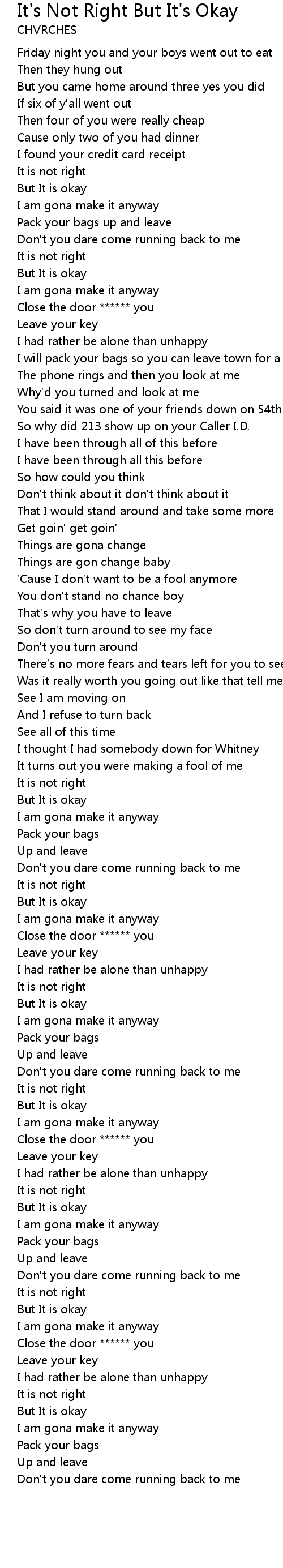 | [01:08.11] | I will pack your bags so you can leave town for a week yes I am |