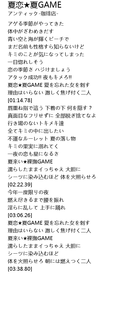 | [03:07.66] | 夏恋★夏GAME 愛を忘れた女を刺す |