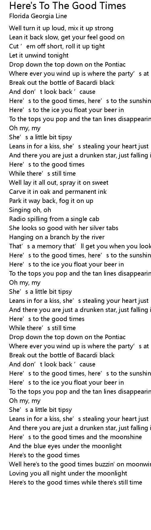 | [03:34.90] | Here' s to the good times and the moonshine |