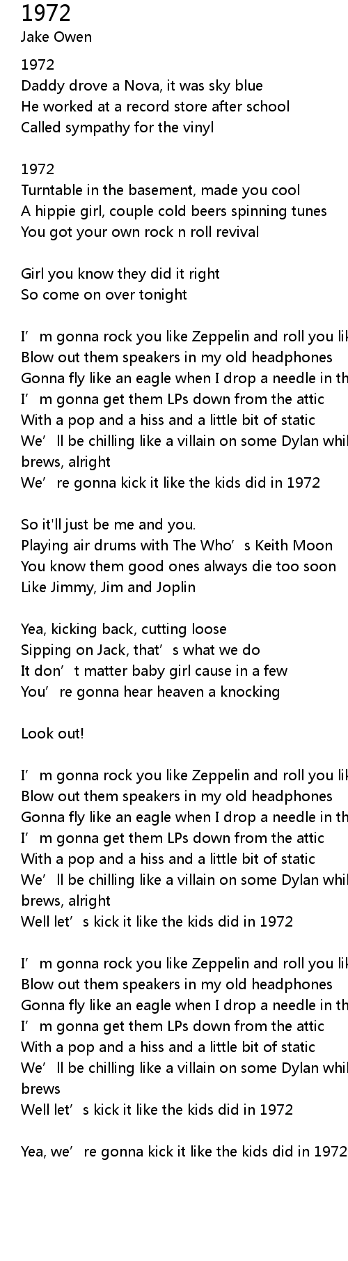 | We' re gonna kick it like the kids did in 1972 | |