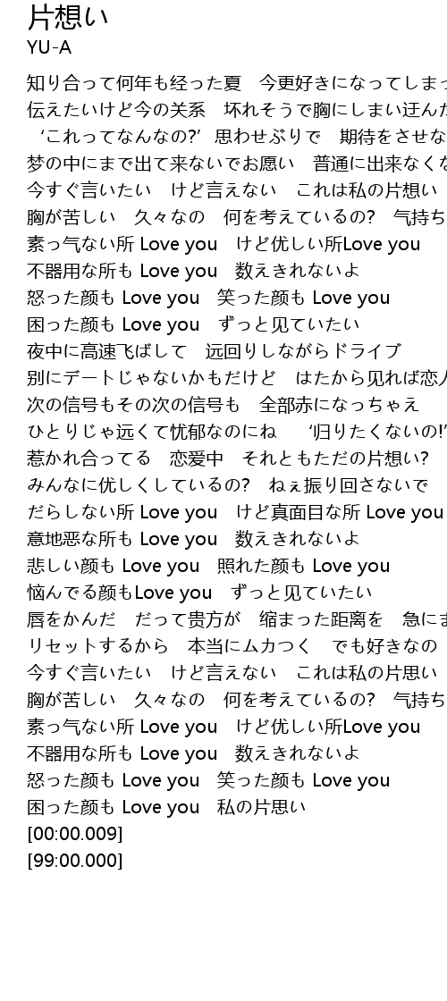 | [01:00.58] | 今すぐ言いたい けど言えない これは私の片想い |