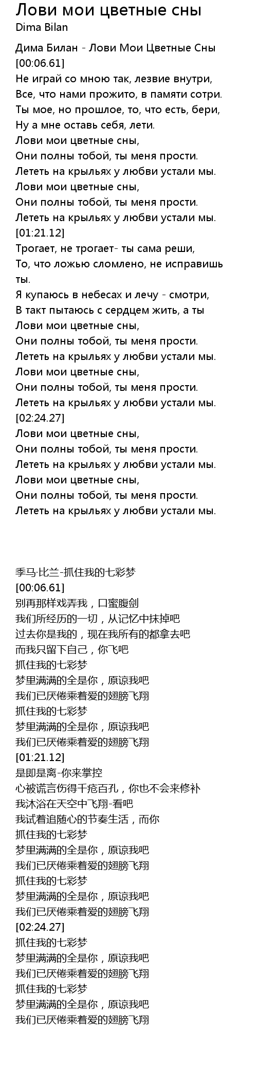 Дима Билан - Лови Мои Цветные Сны |