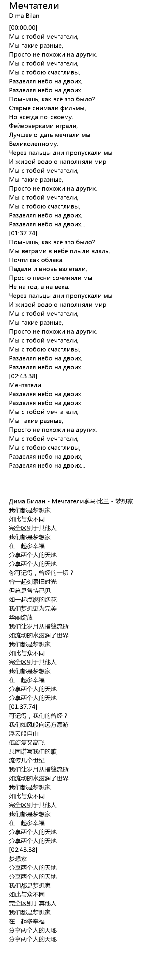 Мы с тобой мечтатели, |