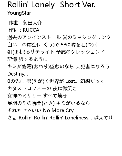 | [01:21.68] | Rollin' Rollin' Rollin' Loneliness yuè |
