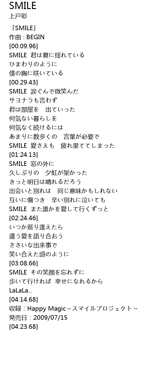 | [03:11.21] | SMILE その笑顔を忘れずに |