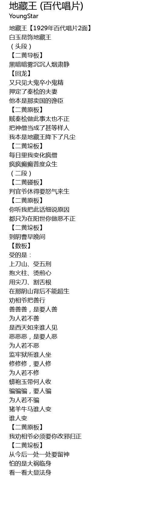 | [00:00.50] | 地藏王【1929年百代唱片2面】 |