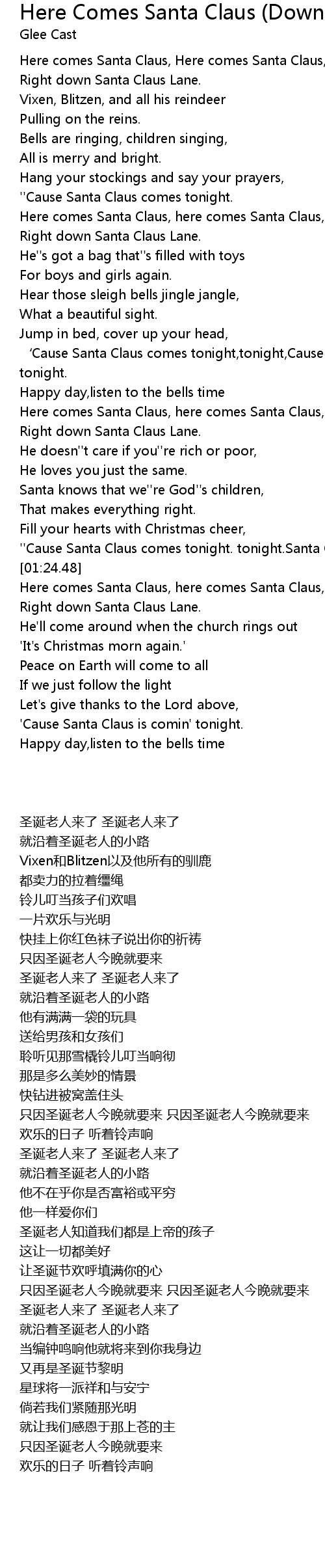 | [01:49.42] | Here comes Santa Claus, here comes Santa Claus, |