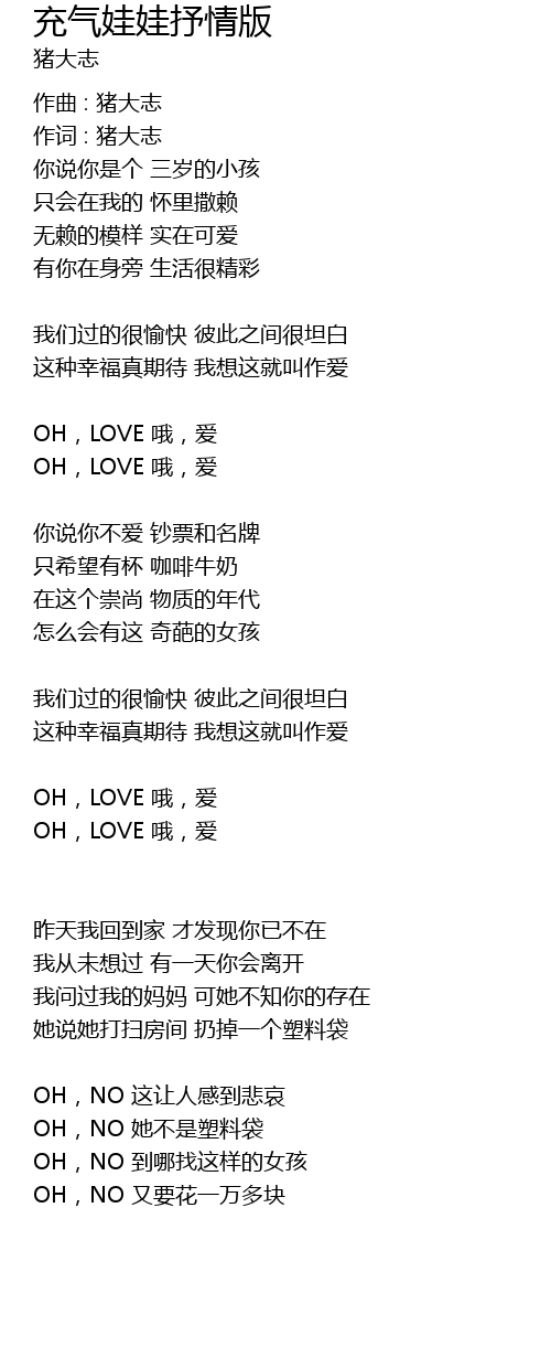 | 作词 : 猪大志 | |