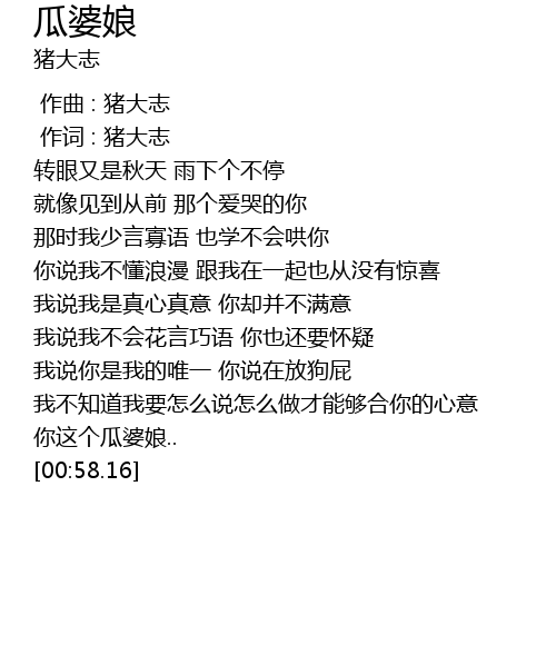 | [00:01.00] | 作词 : 猪大志 |