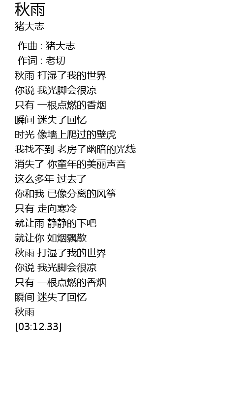 | [00:40.82] | 秋雨 打湿了我的世界 |