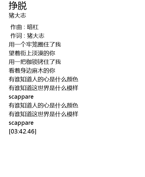 | [00:01.00] | 作词 : 猪大志 |