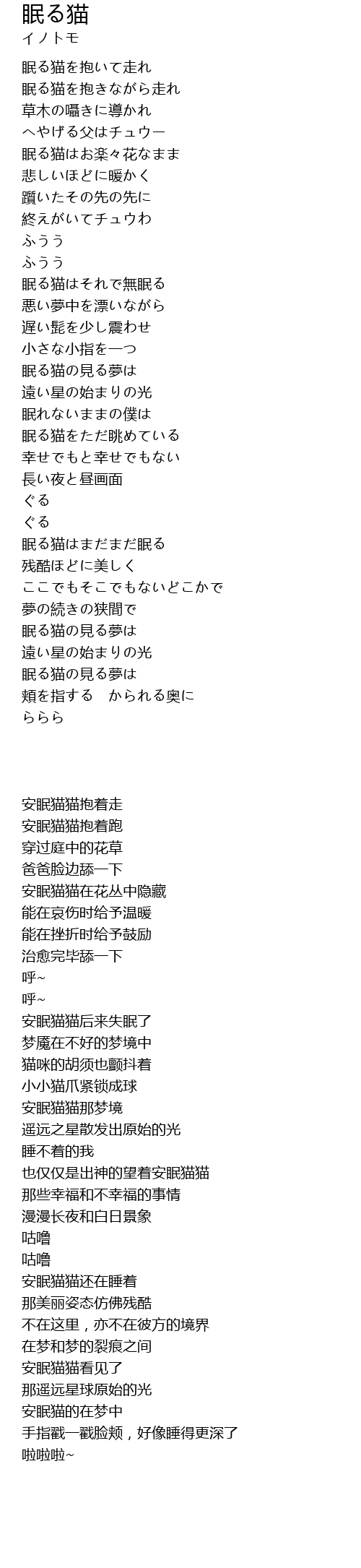 眠る猫はそれで無眠る |