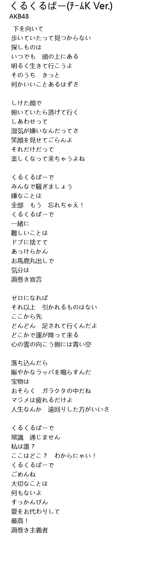 | Song | くるくるぱー(チームK Ver.) |