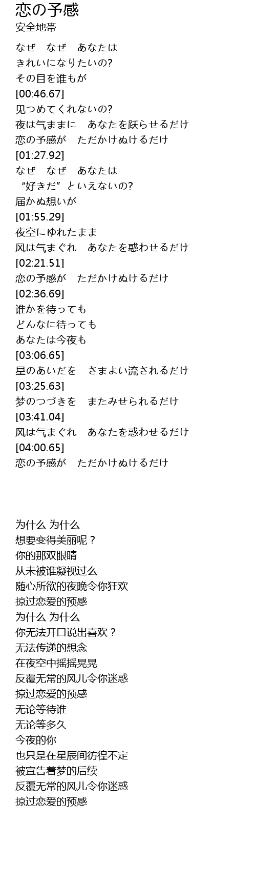 [04:01.21] 恋の予感が ただかけぬけるだけ