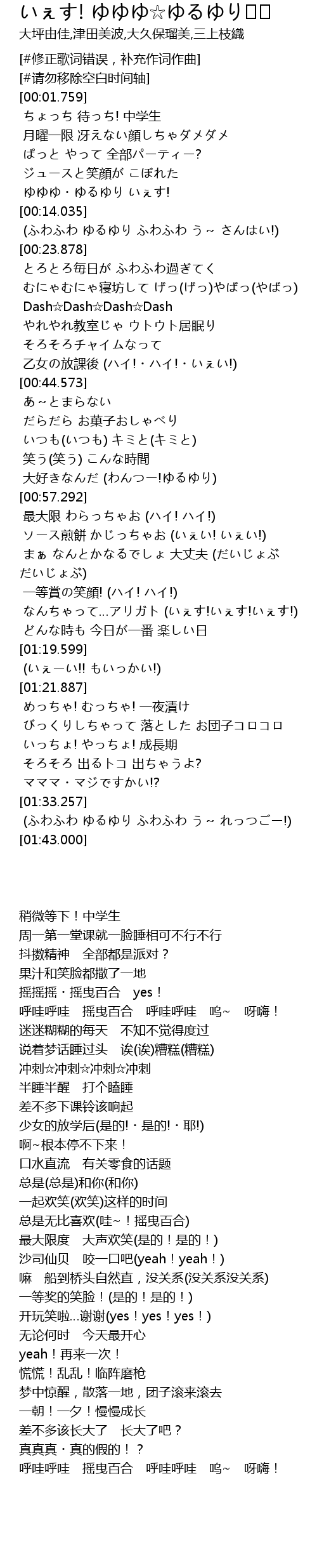 | [00:12.145] | ゆゆゆ・ゆるゆり いぇす! |