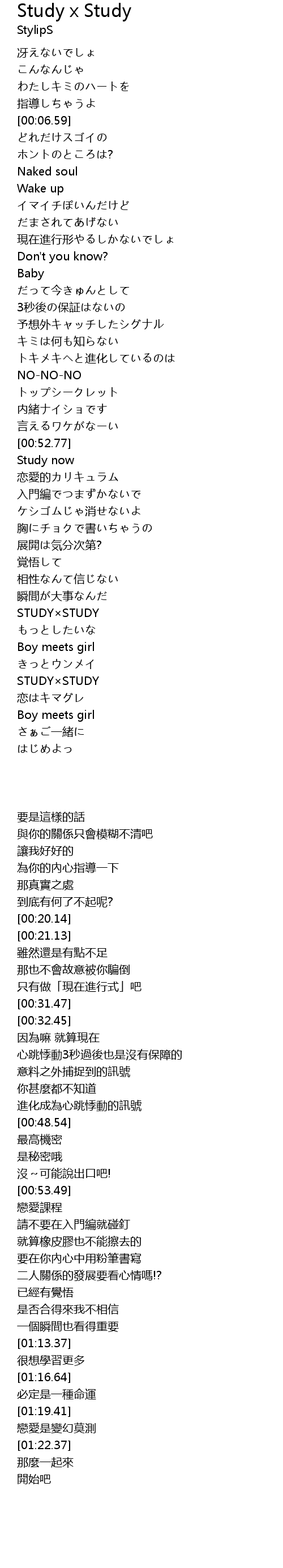| [01:19.41] | STUDY×STUDY |