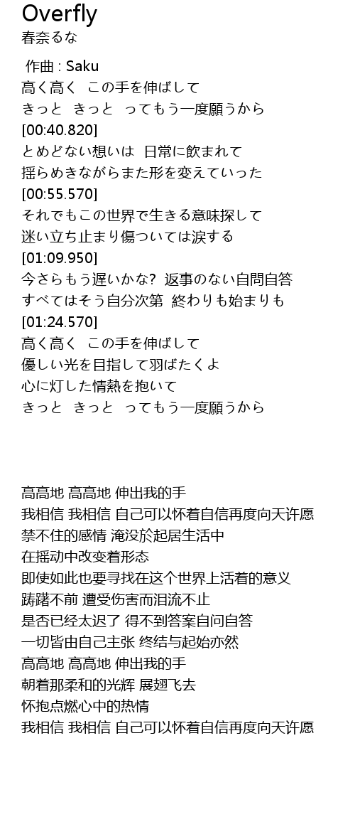 | [01:25.190] | 高く高く この手を伸ばして |