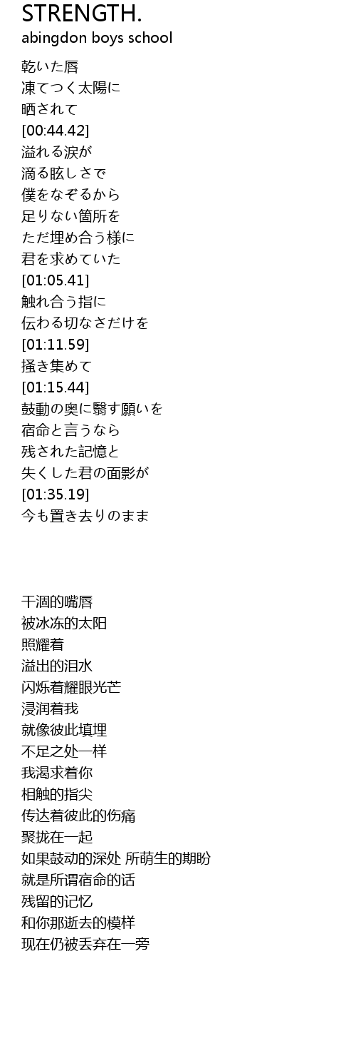 | [01:16.13] | 鼓動の奥に翳す願いを |