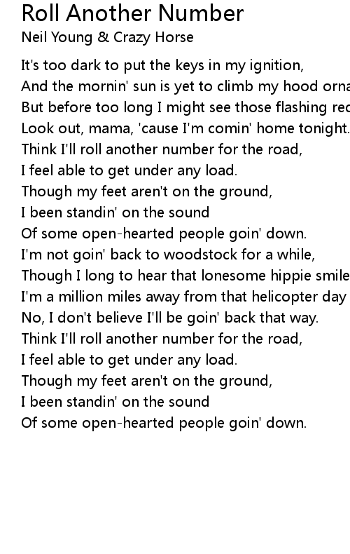Think I'll roll another number for the road, |