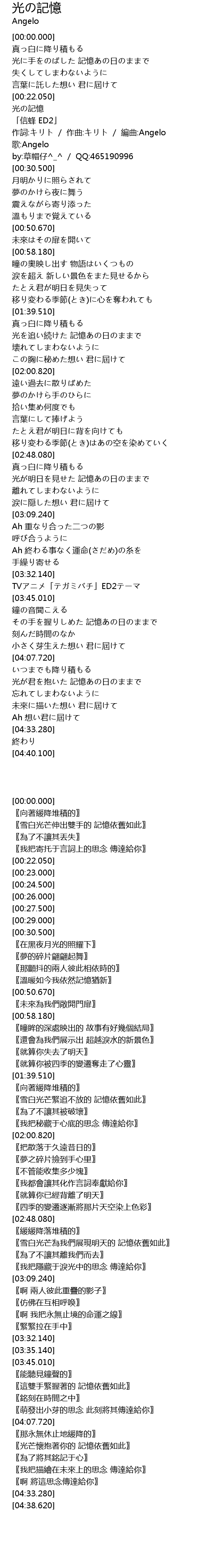 | [00:23.000] | 光の記憶 |