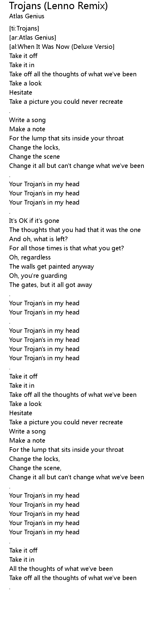 Trojans (Lenno Remix) Lyrics