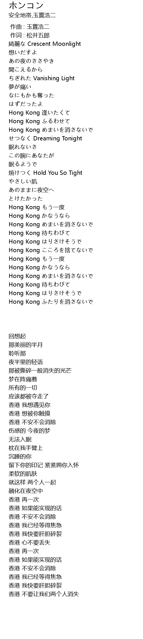 | [00:57.628] | Hong Kong 逢いたくて |