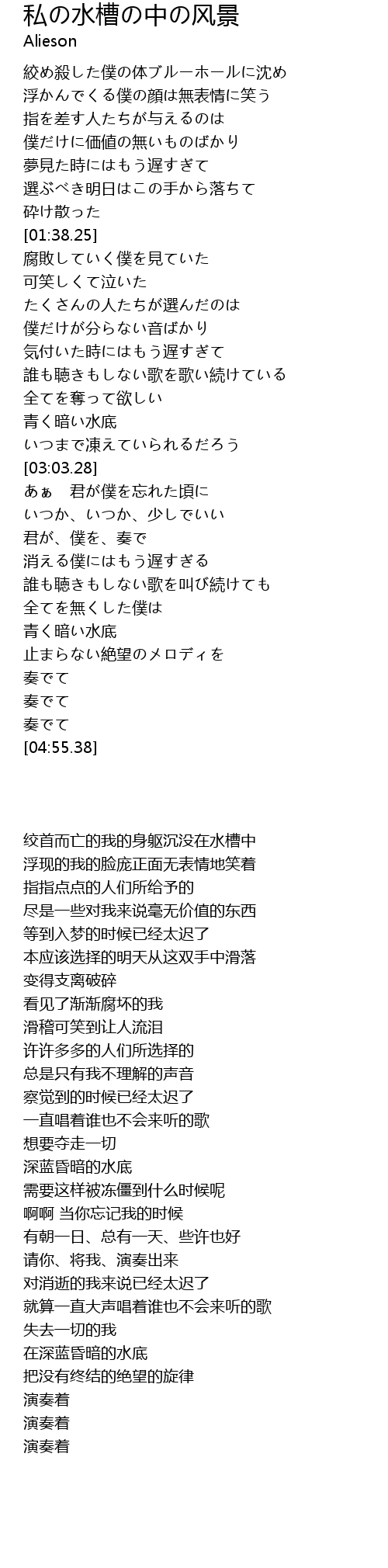 | [00:19.76] | 絞め殺した僕の体ブルーホールに沈め |