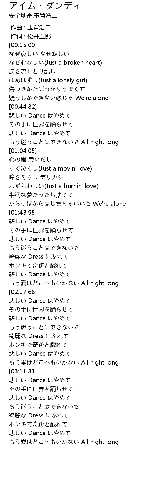 | [03:38.98] | もう愛はどこへもいかない All night long |