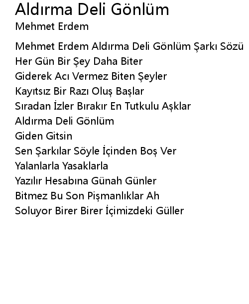 | Mehmet Erdem Aldırma Deli Gönlüm Şarkı Sözü | |