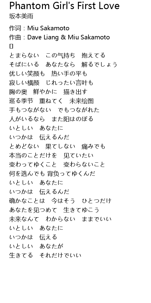 | 作词:Miu Sakamoto | |