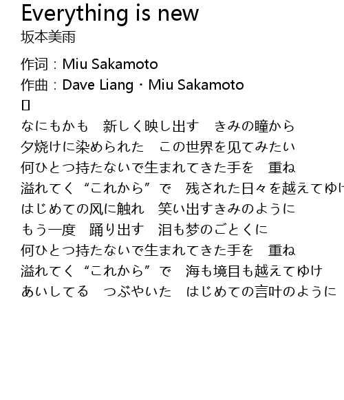 | 作词:Miu Sakamoto | |