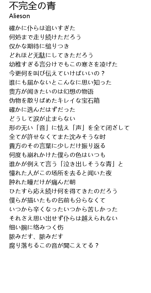 | [03:06.21] | 谁かが例えて言う「泣き出しそうな青」と |