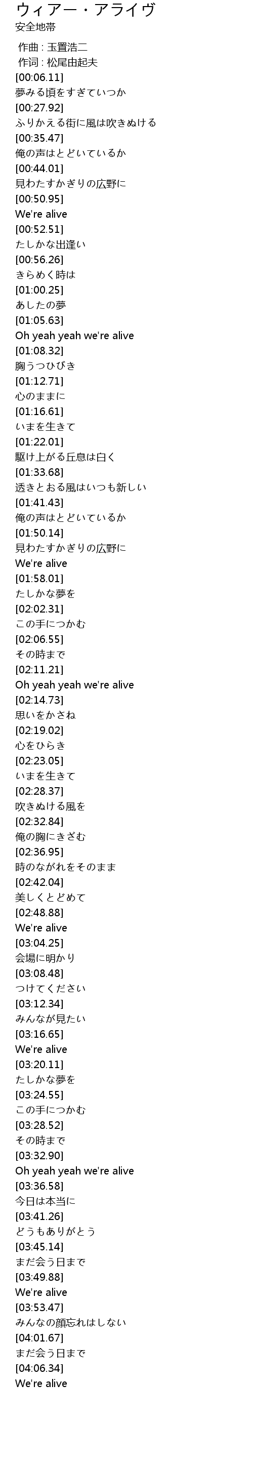 | [03:34.40] | Oh yeah yeah we' re alive |