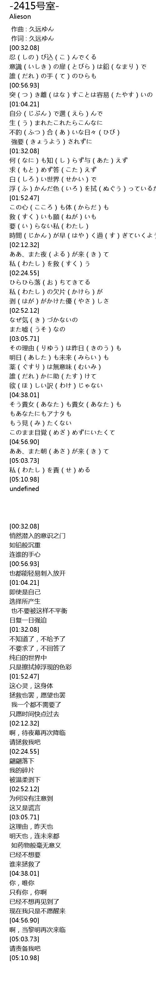 | [04:48.24] | このまま目覚(めざ)めずにいたくて |
