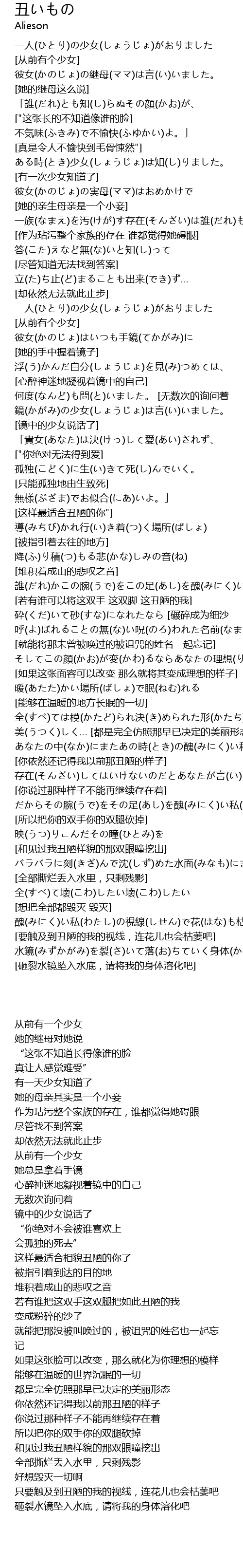 | [00:52.13]鏡(かがみ)の少女(しょうじょ)は言(い)いました。 [镜中的少女说话了] | |