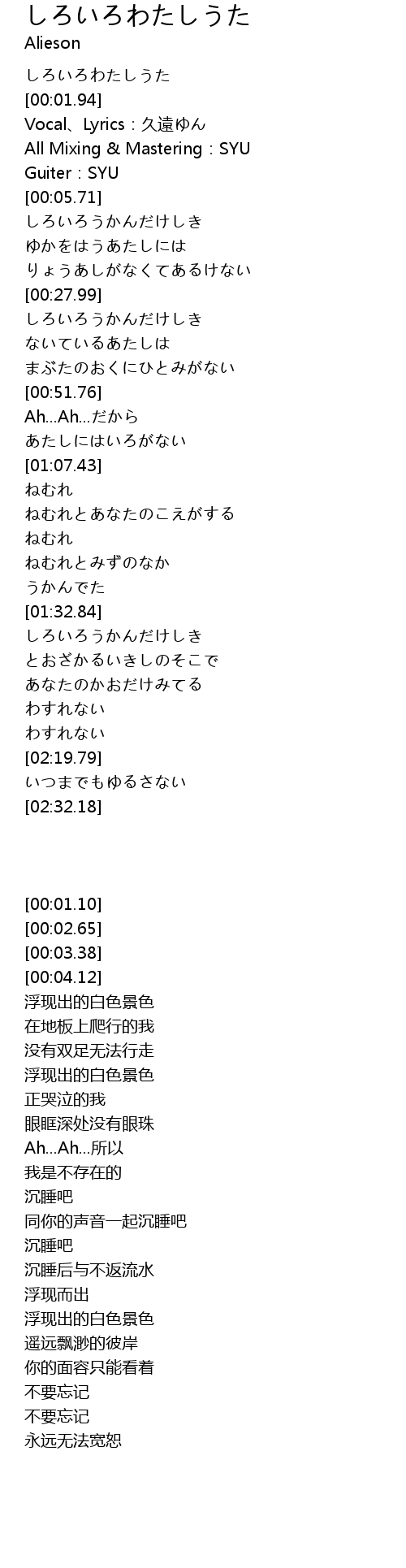 | [00:02.65] | Vocal、Lyrics:久遠ゆん |
