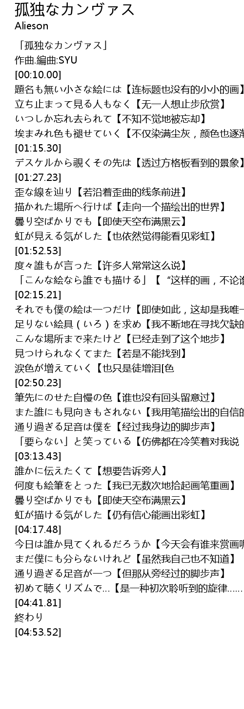 | [00:00.00] | 「孤独なカンヴァス」 |