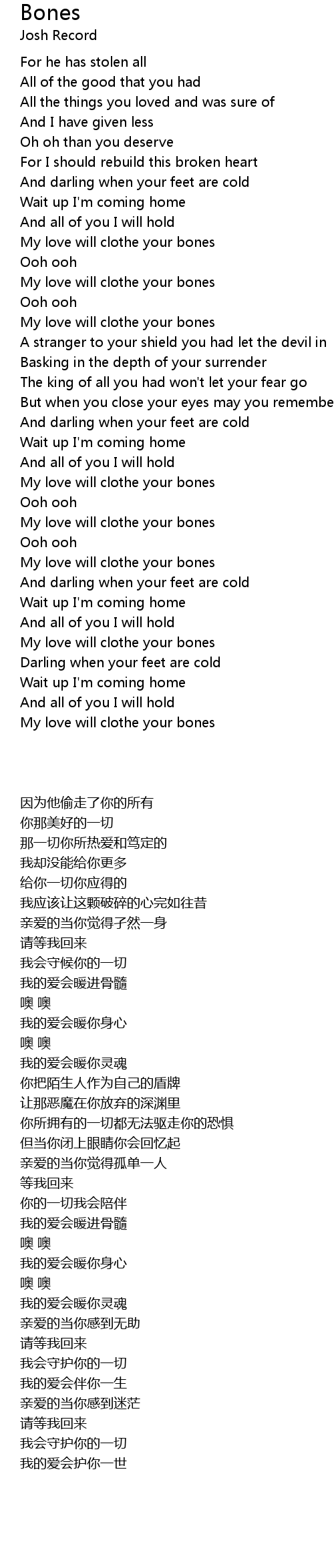 My love will clothe your bones |