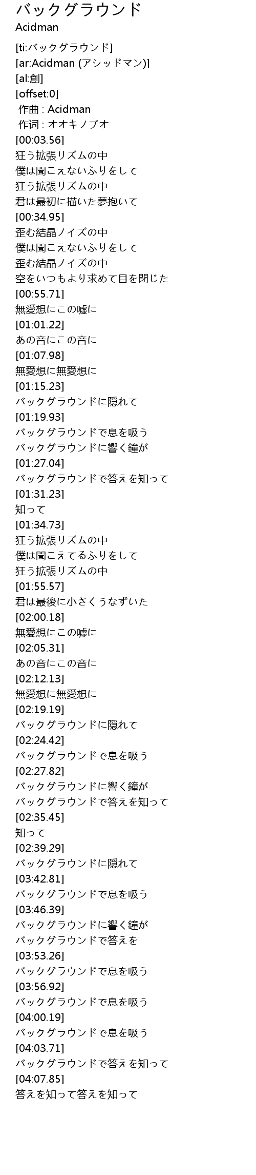 | [00:00.00] | zuo qu : Acidman |