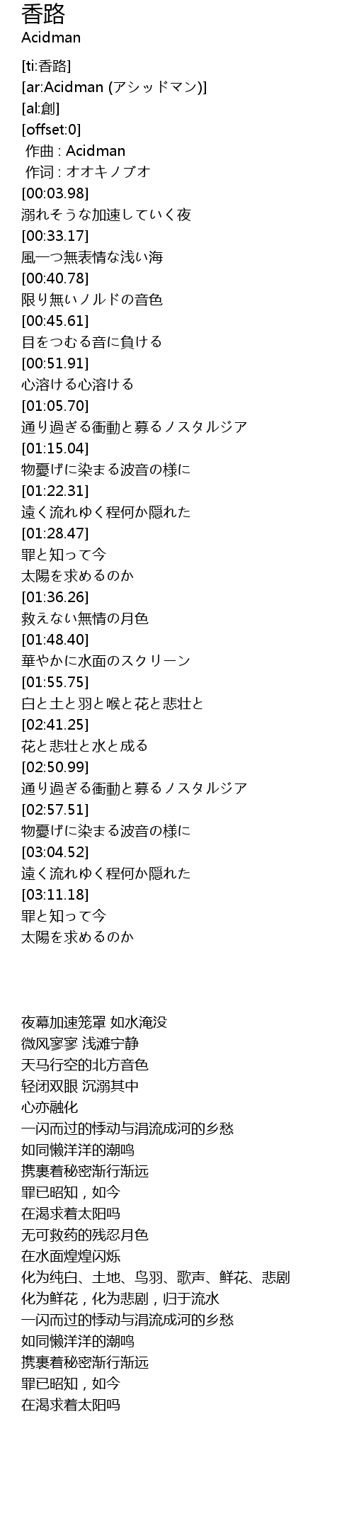 | [00:00.00] | zuo qu : Acidman |